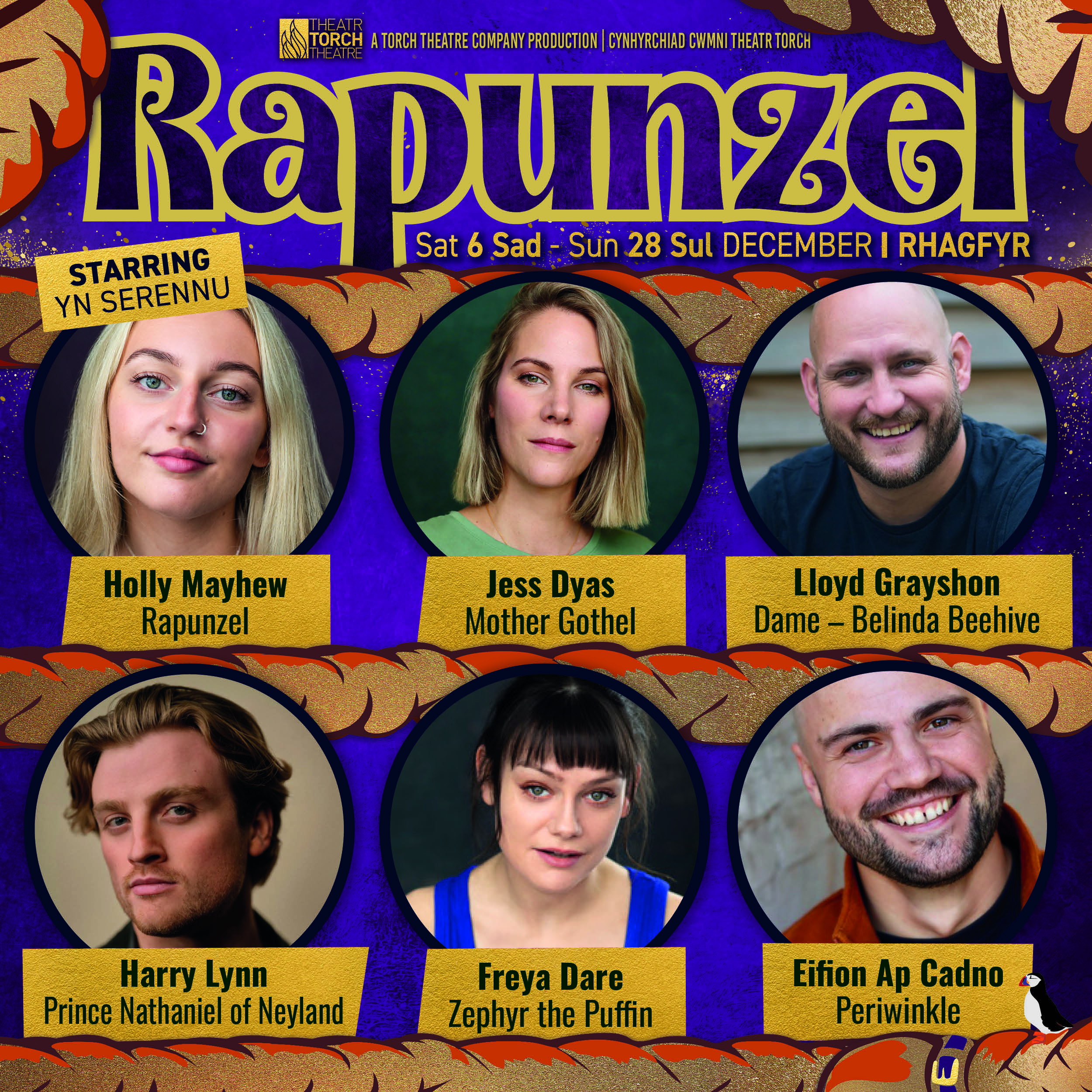 Mae'r set yn cael ei hadeiladu, mae'r gerddoriaeth yn cael ei chyfansoddi, mae'r sgript yn barod. Ond pwy fydd yn dod â'r sgript yn fyw yng ngweithiau Rapunzel, Mam Gothel, y Fonesig – Belinda Beehive, y Tywysog Nathaniel o Neyland, Zephyr y Pâl a Periwinkle ym mhantomeim Nadoligaidd Theatr Torch, Rapunzel y mis Rhagfyr hwn?