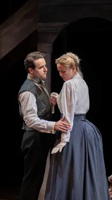Atmosphere could not have been achieved to the such a high standard were it not for the sterling contributions made by Jack Beddis and Tom Sinnett. The sombre tones serenaded the proceedings, rumbling along in the most menacing fashion throughout, enhancing the drama. Even the sweet sounds of the well-known Brahms' lullaby were doleful and portending of doom. Lighting designer Katy Morison was not to be outdone either. The lighting was a pleasure, playing upon the darkened shadowy and reflective mood set by the story and settings at Bly and the lake, interspersed with golden hues, warm lamp and candlelight. The stark bright lighting radiated with full effect in dramatic contrast to the darkness, ramping up the tension and during storms. The costumes are a joy. Rustling dress and bustle silhouette, tailed suit and starched collar, with silked cravat all attesting to the designing and supervision talents of Ruth Stringer and Louise Sturley.